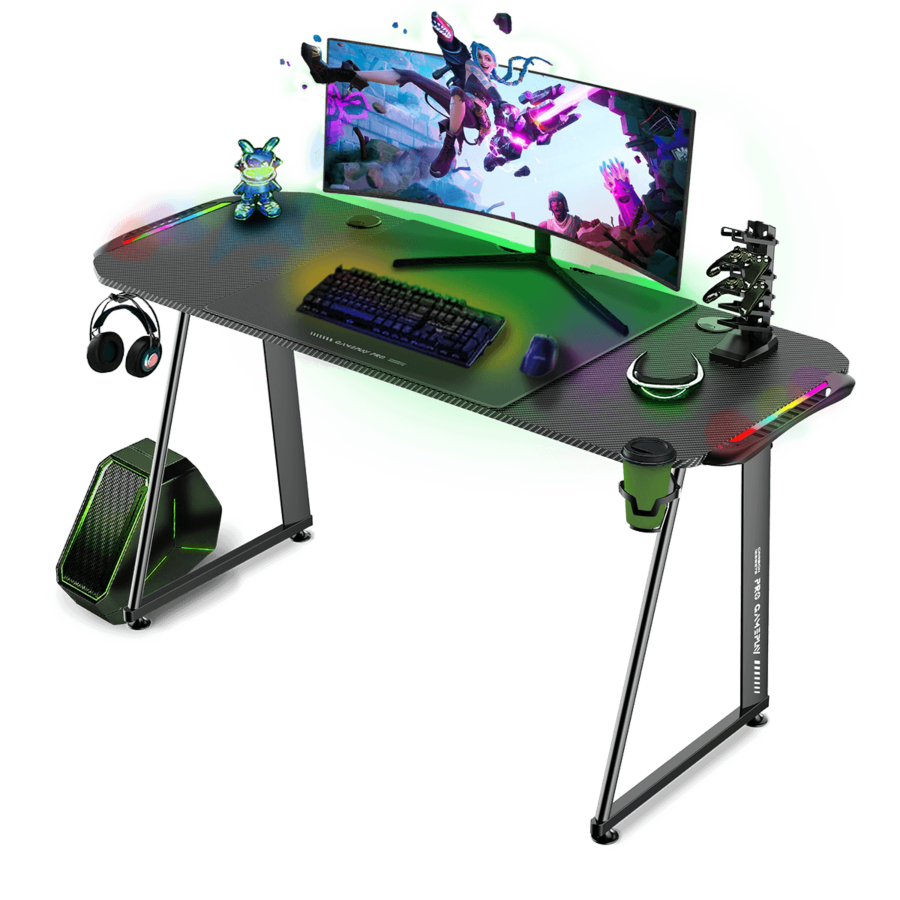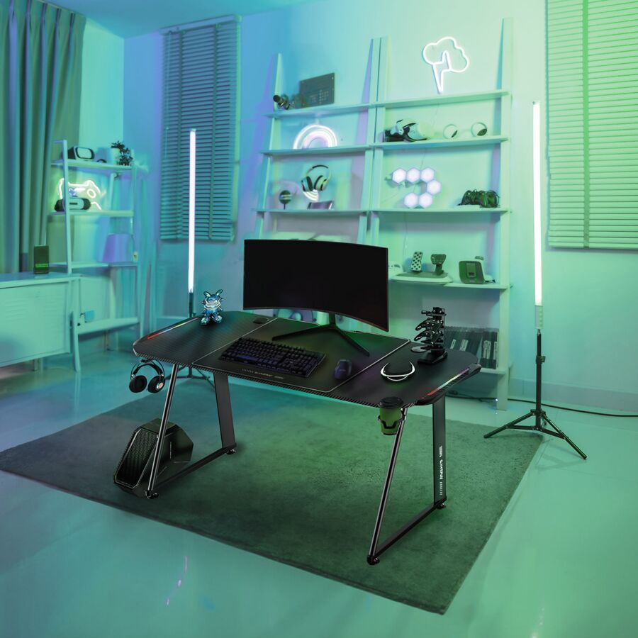 Por último, pero no menos importante, este escritorio incluye detalles que lo convierten en un verdadero sueño para cualquier gamer. Su diseño incluye espacio específico para colocar tiras LED, permitiéndote personalizar la iluminación según tu estilo o el ambiente de tu habitación. Esto no solo mejora la estética general, sino que también crea una atmósfera inmersiva para tus sesiones de juego.