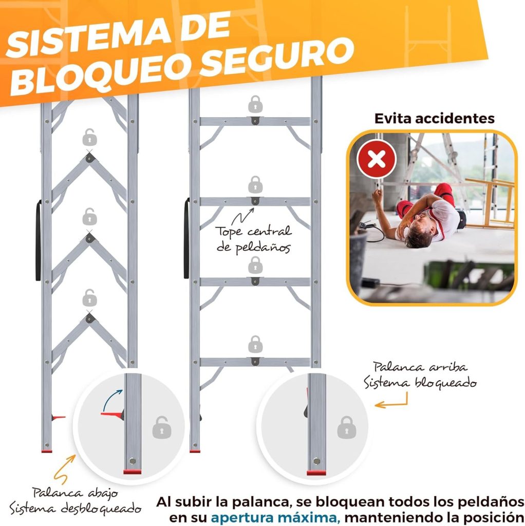 Esta escalera de 3 peldaños de aluminio ha sido diseñada para ser la solución definitiva en el mantenimiento doméstico. Su estructura de alta resistencia permite soportar cargas importantes manteniendo un peso mínimo, ideal para ser transportada por cualquier persona.