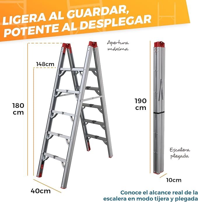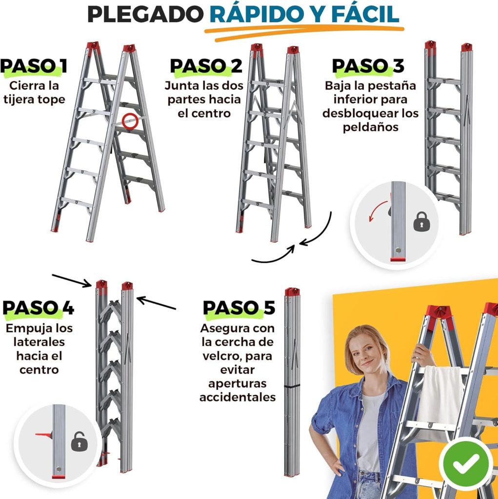 El inventor de esta escalera plegable de aluminio, tras enfrentarse repetidamente a la dificultad de alcanzar armarios altos en espacios reducidos, detectó un problema común: las escaleras tradicionales son pesadas y difíciles de guardar. Gracias a su ingenio, desarrolló esta escalera doméstica plegable que combina ligereza y máxima seguridad.