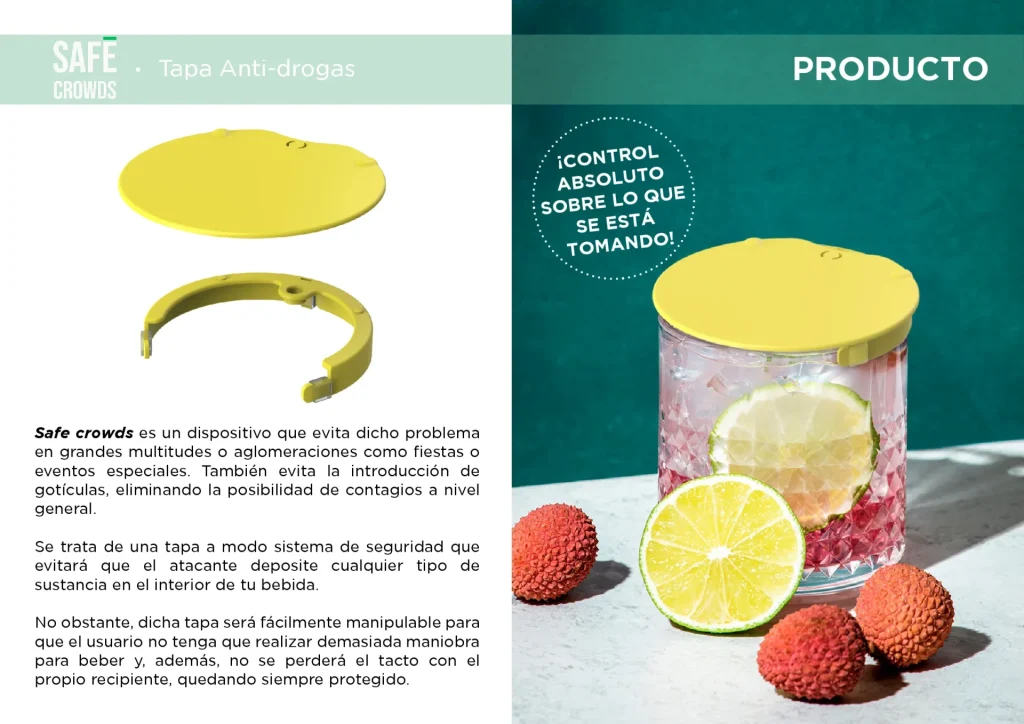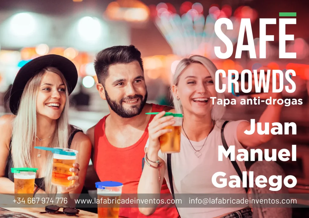 El inventor de Safe Crowds, Juan Manuel Gallego, tras observar la creciente preocupación por la seguridad en entornos de ocio nocturno, detectó el grave peligro que supone la sumisión química. Gracias a detectar este problema de vulnerabilidad y aplicar su ingenio, dio con la solución: una tapa anti-drogas universal y ergonómica.